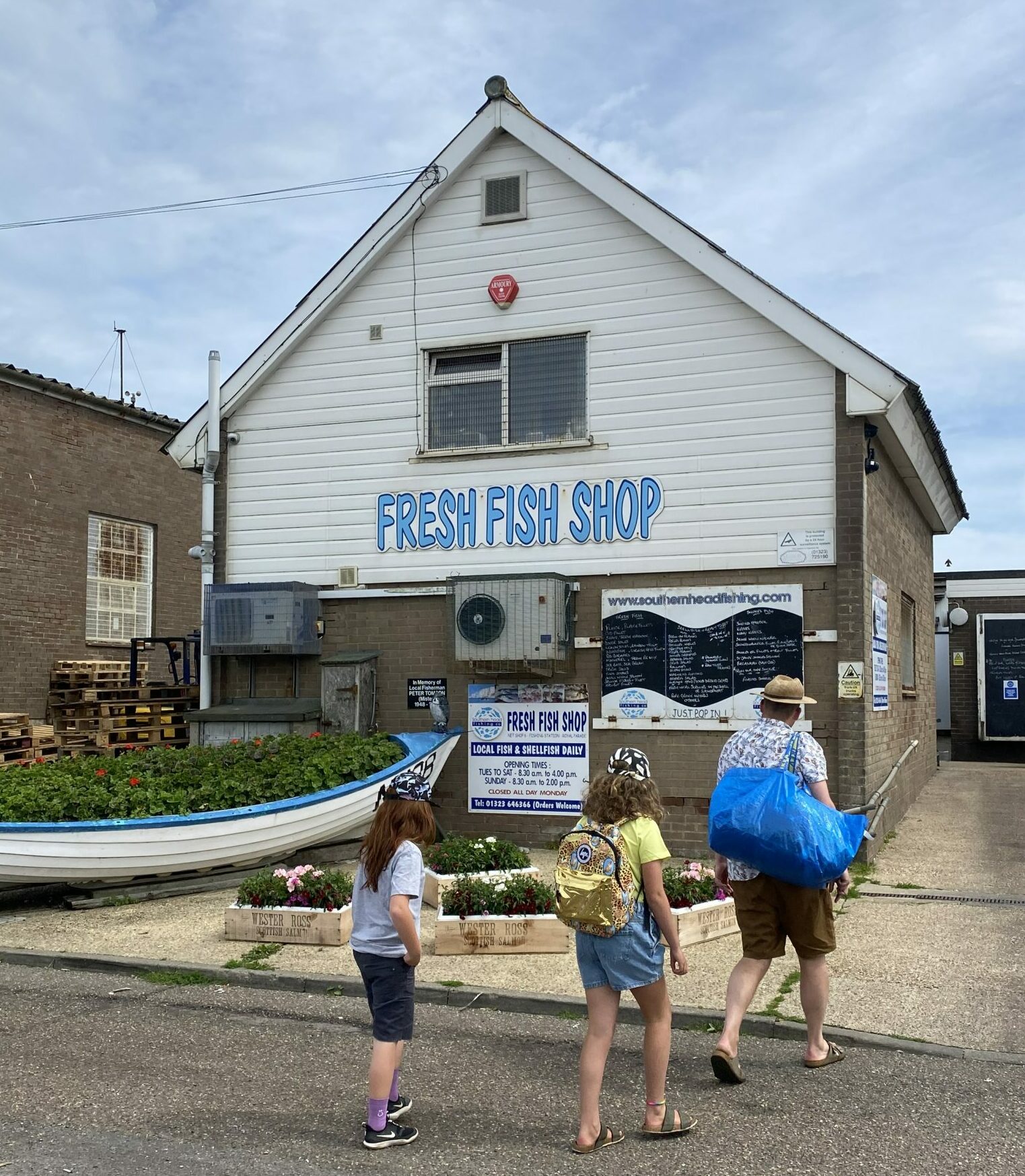On a sunny-ish day in June, we set off for our favourite Eastbourne beach, which is amazing in more ways than one. The water is clear, there’s lots of plant life on the beach, and perhaps best of all, our favourite wet fish shop ever, Southern Fishing Co, is right there on the beach and there is so much variety!