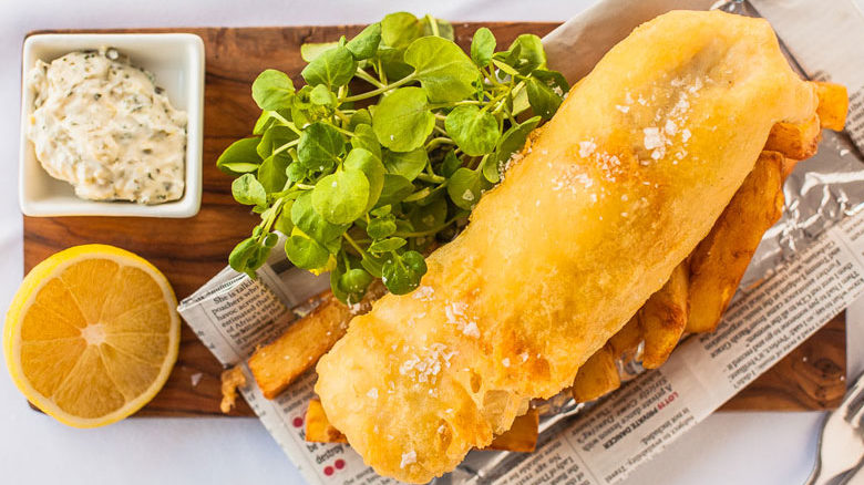 Cornish beer-battered hake and chips