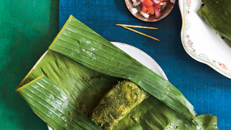 The Gujarati-speaking Parsi community in Pakistan have a distinct flavour to their cuisine. This is a classic recipe that only seems to vary ever so slightly from one Parsi home to the next. You can use a whole fish, or pieces; you can cook the fish on the barbecue, you can shallow-fry, or steam the banana-leaf parcels in a steamer. If you can’t find banana leaves then use foil instead. Gently steam the fish parcels in a steamer or bake in a hot oven.