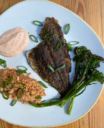 - Rub the fish with the jerk seasoning and leave to marinate for an hour.