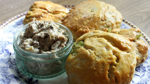 Firmly grounded in its South Tyneside location, Gladys Smith’s Souter Lighthouse café menu offers such local specialities as Panacklety and Singin’ Hinnies. This recipe matches hearty mackerel pate with big leek and onion flavours in the scones. Drop by the lighthouse to enjoy these alongside a glass of Souter Lighthouse Best Bitter, or rustle up a batch at home for a tea time treat.