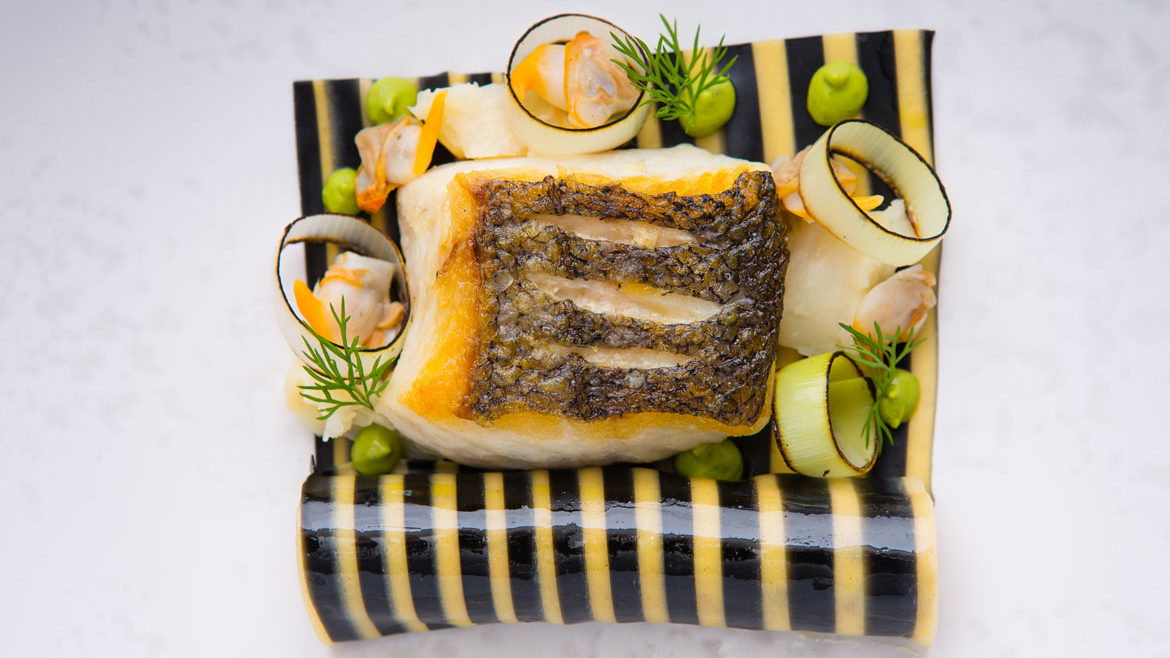 Scottish hake fillet, shellfish cannelloni, fennel and dill purée
