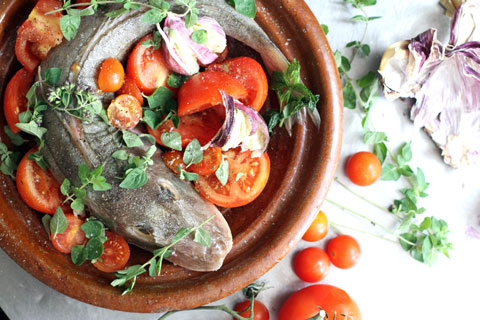 Gurnard is a bony fish that is best cooked whole. This recipe is as simple as it is delicious: by cooking the whole fish with the tomatoes it creates a marvellous fresh sauce.